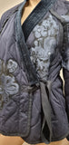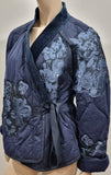 3.1 PHILLIP LIM Blue Cotton V Neck Wrap Tie Closure Padded Floral Kimono Jacket