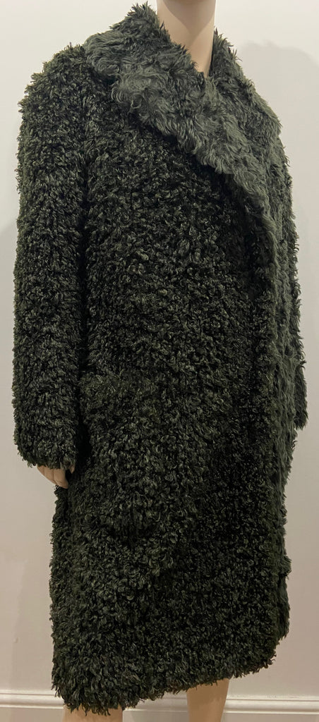 3.1 PHILLIP LIM Green Mohair Faux Shearling Double Breasted Long Sleeve Coat