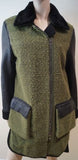 3.1 PHILLIP LIM Khaki Green Detachable Fur Collar & Leather Sleeves Coat S