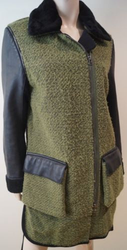 3.1 PHILLIP LIM Khaki Green Detachable Fur Collar & Leather Sleeve Jacket Coat S