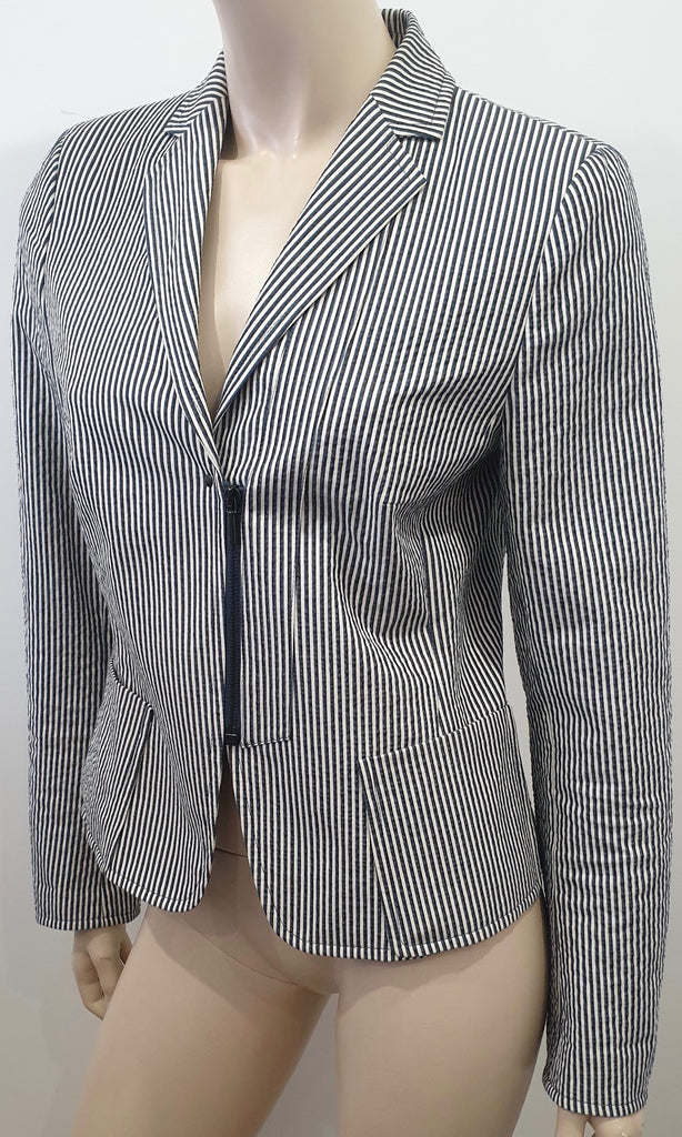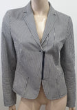 AKRIS PUNTO Blue Grey & White Stripe Cotton Blend Summer Blazer Jacket Top UK12