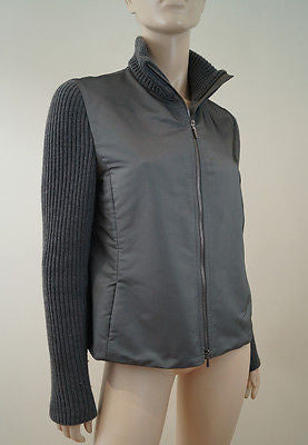 AKRIS PUNTO Grey Sheen Jacket With Wool Ribbed Sleeves & Collar Sz:40; UK12;