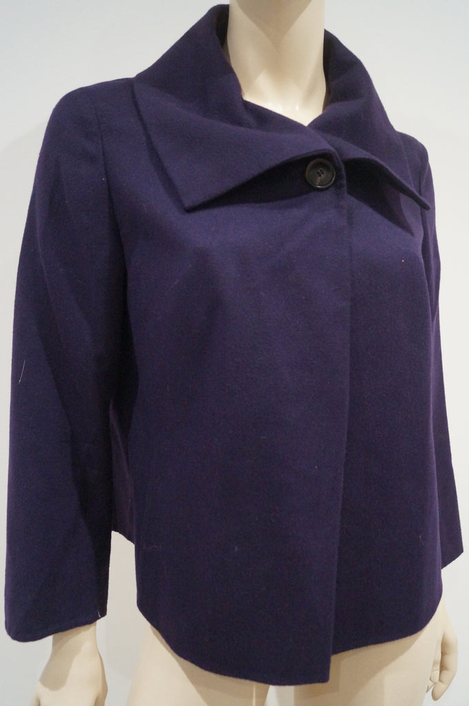 AKRIS Women's Purple 100% Cashmere Collared 3/4 Sleeve Winter Jacket US8 UK12