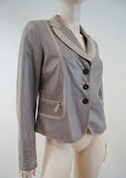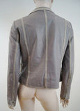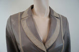 ARMANI COLLEZIONI Grey Soft Lamb Leather & Beige Suede Trim Jacket IT44 UK12