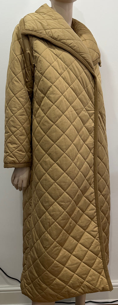 ASOS Camel Brown Large Collar Diamond Quilted Long Length Jacket Coat UK 6 EU34
