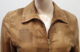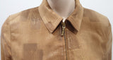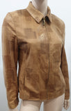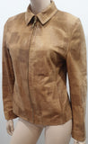 BENET FURS Tan & Gold Detail Collared Zip Fastened Casual Leather Jacket 44 UK12