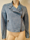 COACH NEW YORK Women's Blue Goat Suede Collared Lined Casual Biker Jacket 6 UK10