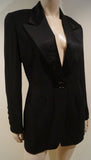 GEORGES RECH Women's Black Wool Blend Sheen Lapels Evening Blazer Jacket 40 UK12