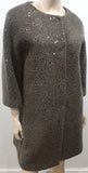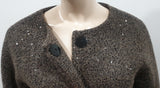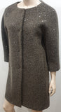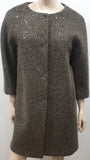 HERNO Khaki Brown Virgin Wool Blend Sequin Embellished Jacket Coat 44 UK12
