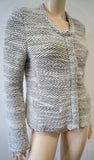 IRO Women's CARENE Cream Black Chunky Knit Long Sleeve Cardigan Jacket 42 UK14