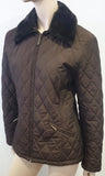 MARELLA Womens Brown Detachable Faux Fur Collar Zip Fastened Quilted Jacket UK12