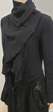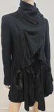 MARITHE FRANCOIS GIRBAUR DE JEAN Black Wool Large Collar Pleated Jacket Coat L