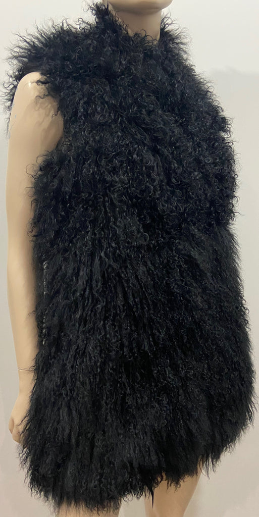 MICHAEL MICHAEL KORS Black Mongolian Lamb Fur Sleeveless Lined Gilet Jacket S