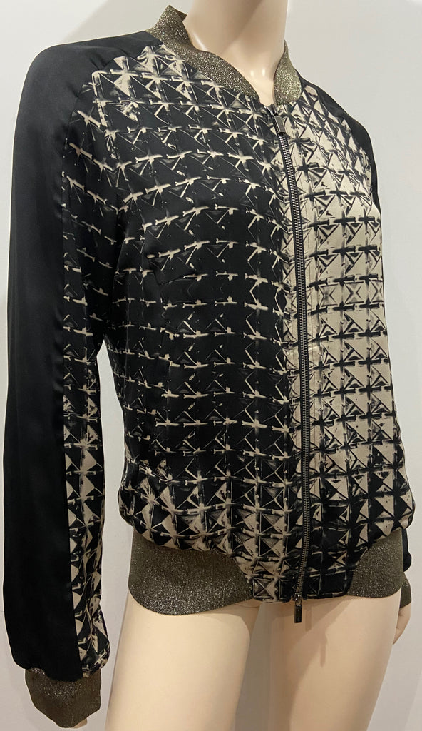 PINKO Black & Cream Geometric Print Zipper Front Lightweight Bomber Jacket UK14