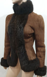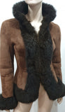 RALPH LAUREN BLACK LABEL Brown Sheepskin Fur Trim High Neck Jacket Top UK8