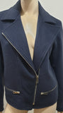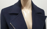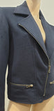 RICHARD NICOLL Navy Blue Wool Blend Collared Silver Zipper Blazer Jacket UK8