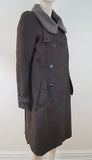 VANESSA BRUNO Women's Chocolate Brown Winter Coat Double breasted Rounded collar Removable baby lamb collar Small shoulder pads Belted Faux front flap pockets Long length sleeves Button fastening to cuffs Size: M (No size label so please note measurements) Underarm to underarm: 21" Length rear neck to hemline: 43" Material: 100% Cotton Lining: 60% Acetate; 40% Cotton Trim: 100% Baby Lamb Weight: 1630g Good pre-owned condition All our garments are guaranteed authentic Please email us if you have any questions Note; this is a used item, therefore despite our inspection process there may be minor imperfections |