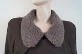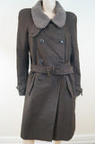 VANESSA BRUNO Chocolate Brown Cotton Lamb Wool Collar Belted Winter Coat SzM