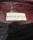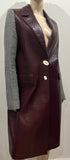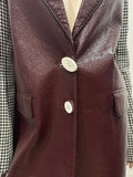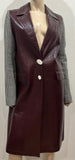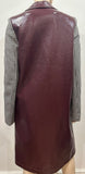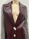 WANDA NYLON Burgundy Houndstooth Tweed-Paneled Textured Vinyl Coat F38 UK10