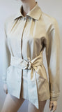 BARBARA BUI Beige Cotton Blend Collared Belted Long Sleeve Lined Jacket 38 UK10
