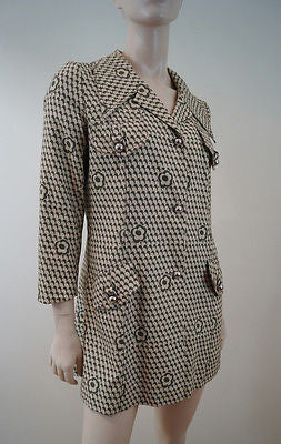 BARBARA BUI Beige Grey 100% Cotton Floral Geometric Print Silk Lined Jacket 40