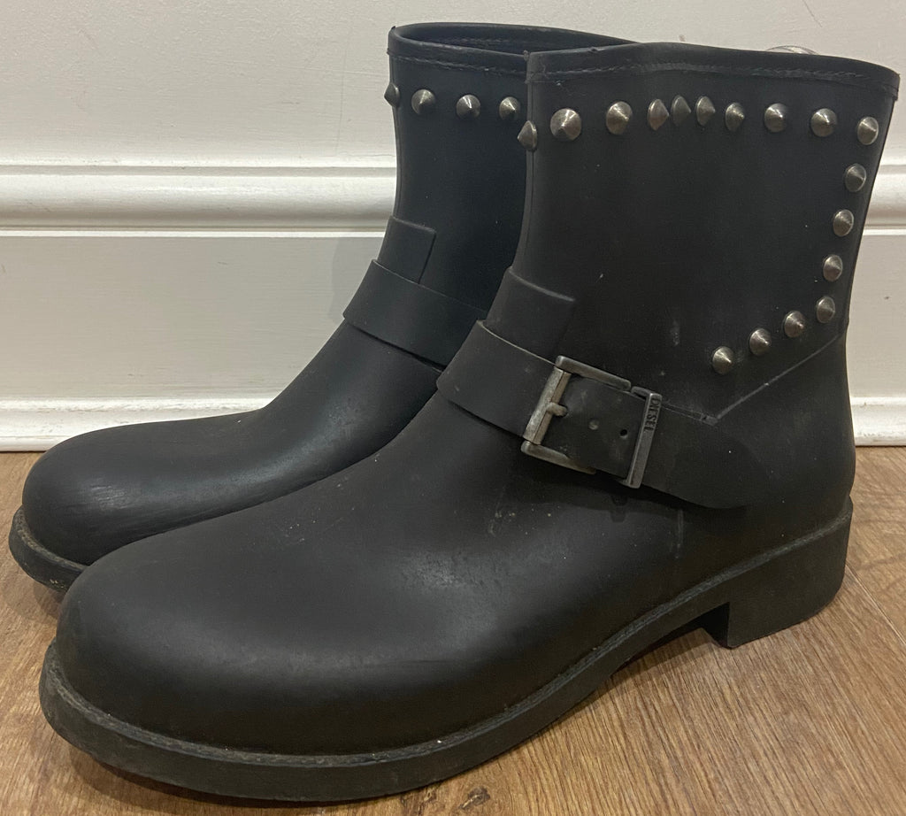 DIESEL Women's Black Rubber Stud Detail Branded Buckle Detail Ankle Boots 40 UK7