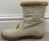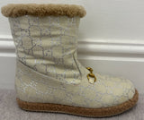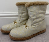 GUCCI Women's Beige & Silver GG Logo Horsebit Detail Lined Snow Boots EU38 UK5