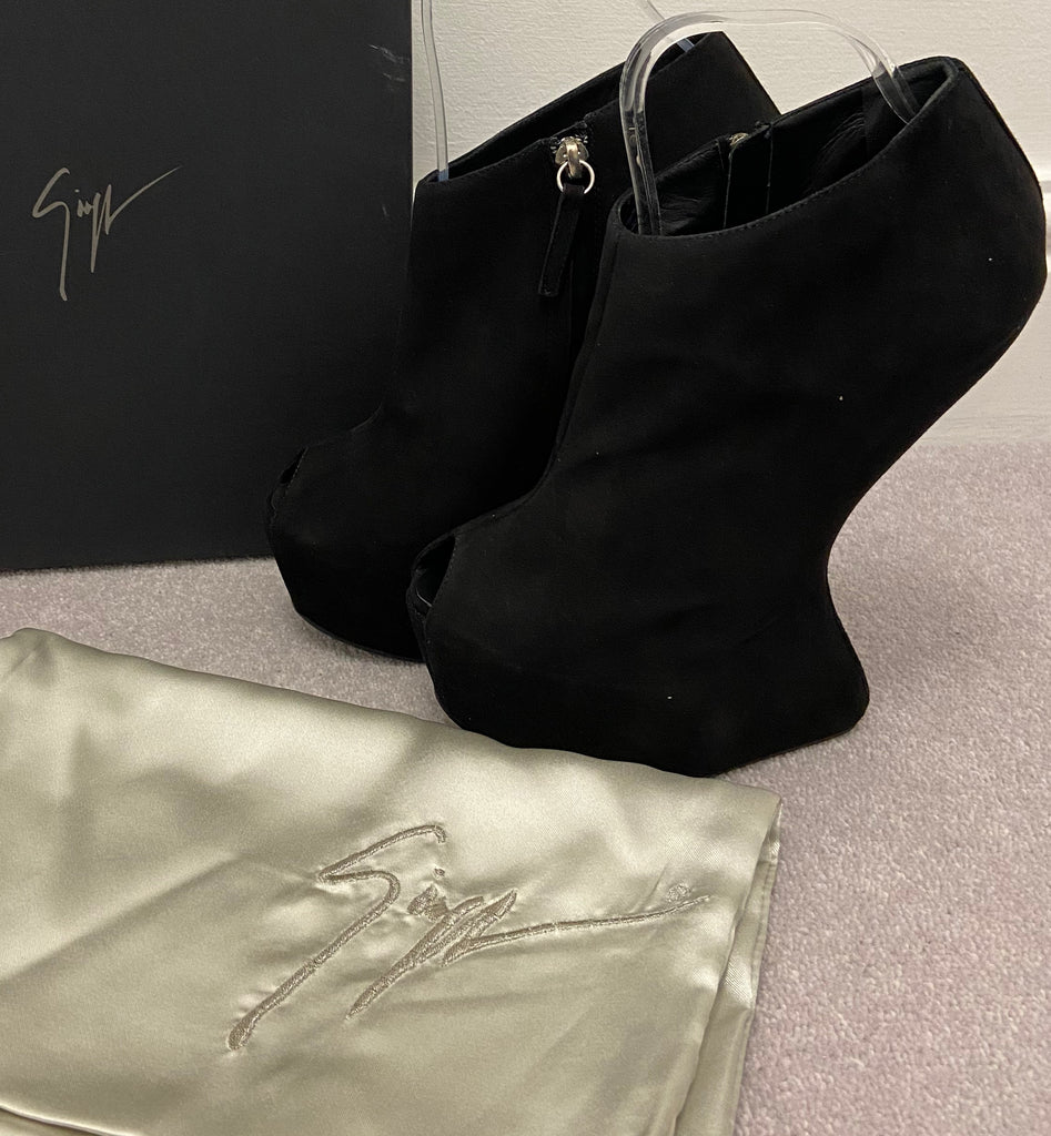 GIUSEPPE ZANOTTI Black Suede Sculpted Platform Ankle Boots UK6 39 NEW IN BOX!