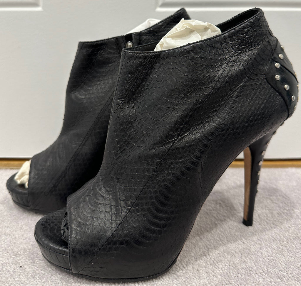 JIMMY CHOO Black Leather Peep Toe Concealed Platform Stiletto Ankle Boots 39 UK6