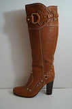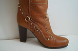 PAN TULIPANI Made In Italy Tan Leather Gold Stud Tall Length Boots EU41; UK8