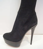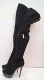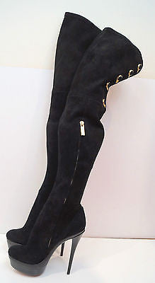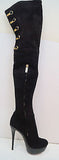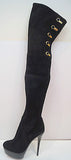 RACHAEL ZOE Black Suede Thigh High Gold Tone Platform Evening Boots EU30 UK6