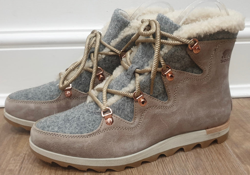 SOREL Beige Suede Grey & Cream Fabric Panel Rubber Sole Ankle Boots UK7.5 NEW!