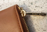 BOSS HUGO BOSS Tan Leather Gold Tone Zipper Small Coin Purse - New With Box