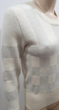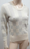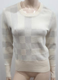 BURBERRY LONDON Cream Wool Blend Check & Stripe Pattern Jumper Sweater S/P