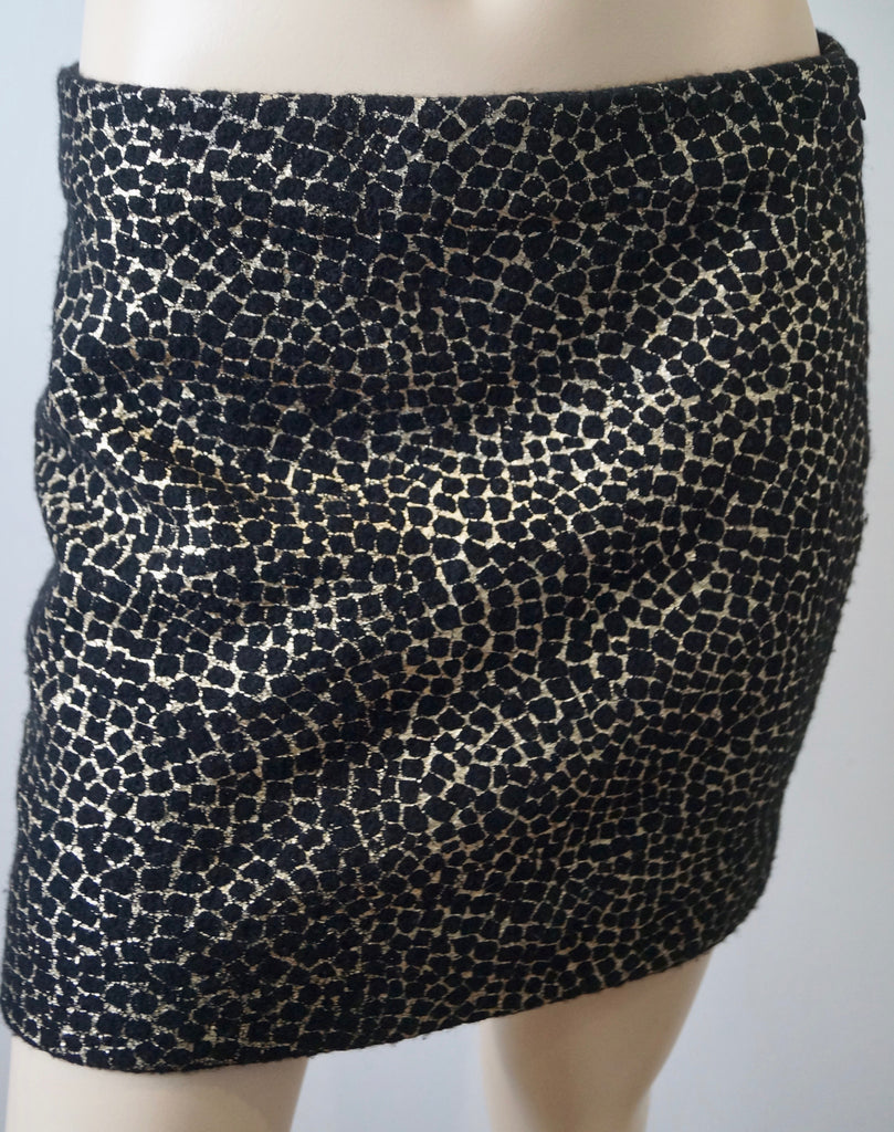 DIANE VON FURSTENBERG Black & Gold 100% Wool Animal Print Short Mini Skirt S