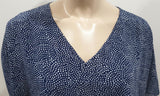 DIANE VON FURSTENBERG Navy Blue Silk Polka Dot V Neckline Tunic Blouse Top M