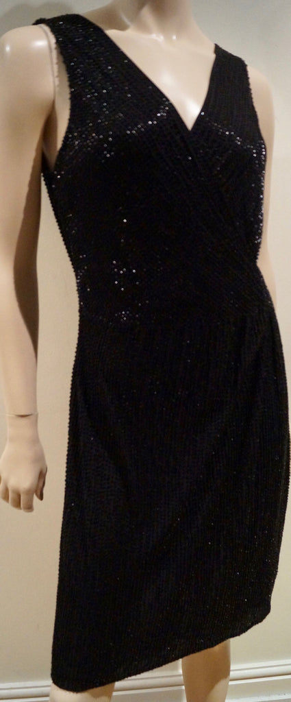 DVF DIANE VON FURSTENBERG Black Silk Beaded V Neckline Sleeveless Even