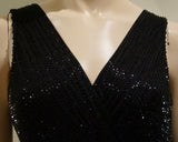 DVF DIANE VON FURSTENBERG Black Silk Beaded V Neckline Sleeveless Evening Dress
