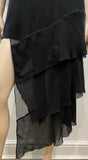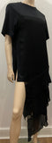 3.1 PHILLIP LIM Black Cotton Silk Short Sleeve Split Side Sheer Hemline Dress M