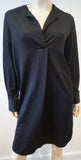 ARKET Womens Black Cotton Jersey Stretch V Neck Long Sleeve Tunic Smock Dress XS
