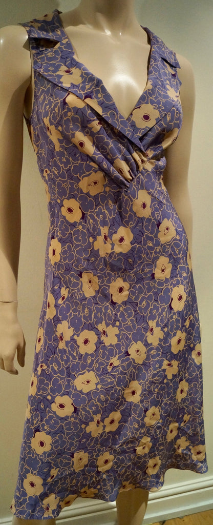 ASPESI Silk Lilac Purple & Cream Floral Print V Neck Sleeveless Dress 42 UK10