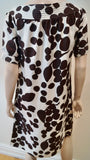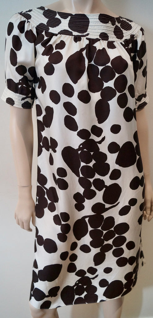 BARNEYS TASTE LUXURY HUMOR Cream & Brown Print Silk Short Sleeve Dress 36/2