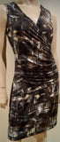 DEBORAH JAMES Women's Grey V Neckline Sleeveless Gathered Waist Dress T2 BNWT