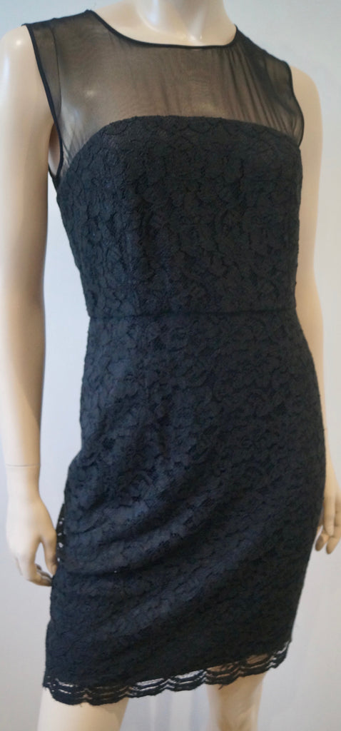 DIANE VON FURSTENBERG Black Sheer Panel Lace Crochet Sleeveless Evening Dress