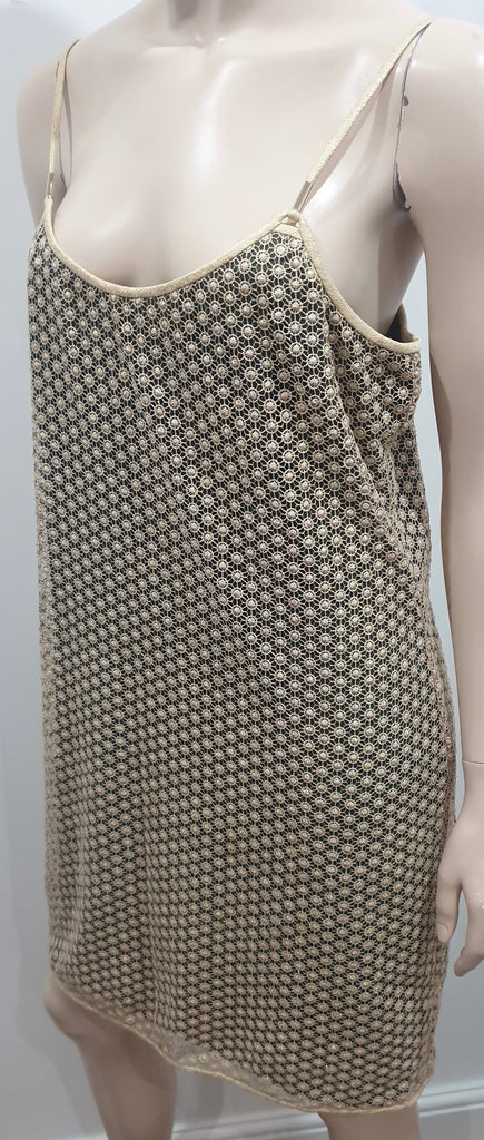 DIANE VON FURSTENBERG Gold ALVERA Metallic Sparkle Guipure Lace Mini Dress M