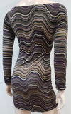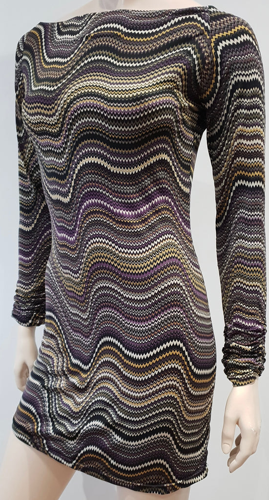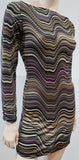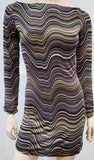 EDEN PARIS Purple Black Beige Stripe Patterned Scoop Neck Long Sleeve Mini Dress