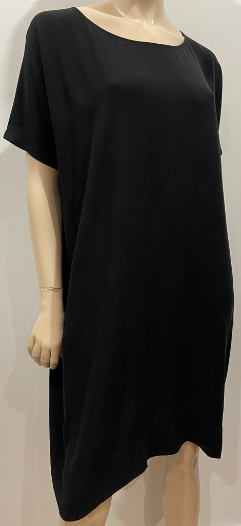 EILEEN FISHER Black 100% Silk Round Neck Short Sleeve Tunic Smock Dress XS