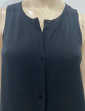 EILEEN FISHER Black Silk Round Neck Front Button Fastened Sleeveless Dress XS