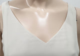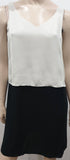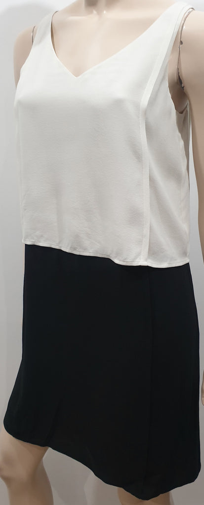 EILEEN FISHER Cream & Black 100% Silk V Neck Sleeveless Short Mini Slip Dress XS