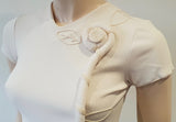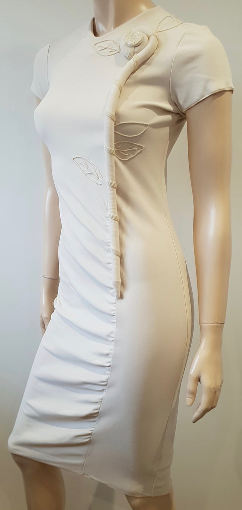 EMPORIO ARMANI Cream Sequin Floral Detail Short Sleeve Ruched Pencil Dress UK12